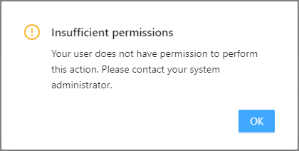 Some buttons are only accessible to users with certain permissions. If a user clicks a button but they do not have the necessary permissions for that area of functionality, an error message will be displayed.