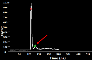 Superficial returns can sometimes be observed in all SuperNova Shallow channel waveforms as a result of a secondary reflection in the fibre bundle and follows the actual pulse that has a relatively high amplitude (usually greater than 30,000 counts). The points from these detected returns will be automatically rejected by this filter. The reflection pulse amplitudes are a scaled version of the true pulse amplitudes and occur after a certain time delay relative to a true pulse. | |