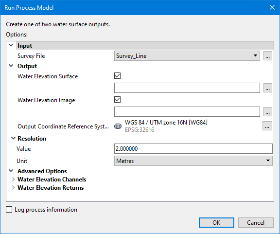 CZMIL > Generate Water Surface Elevation Outputs (Tools window)