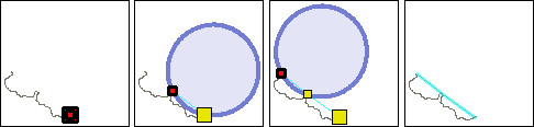 A circle is attached to the mouse pointer. This circle is anchored at the point you just entered; it will “slide” around as the pointer moves. If the circle disappears, the pointer has moved outside the limit indicated by the circle.