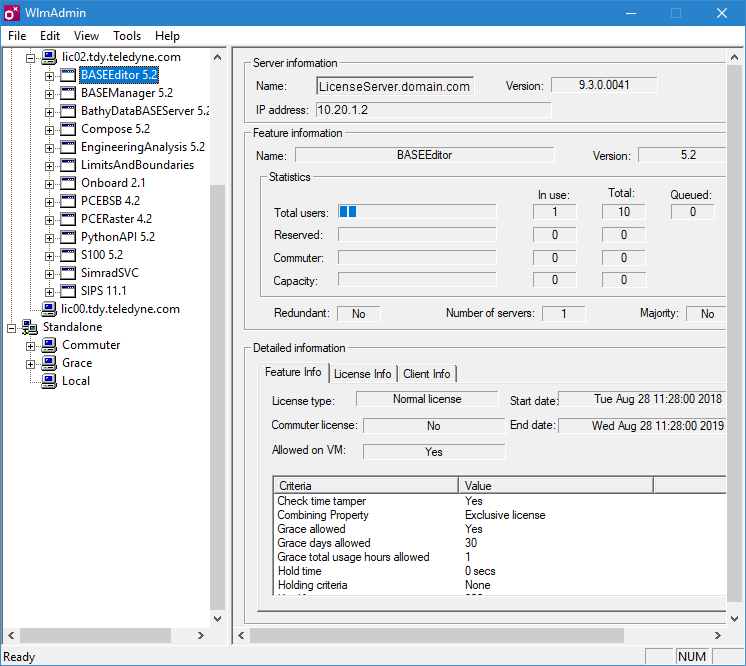 • License Administration: an application used to monitor and manage the network license and the clients connected to it.