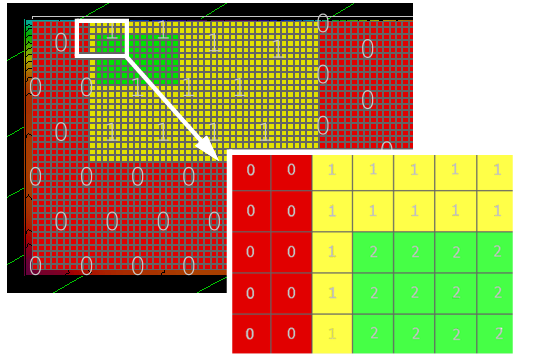For example, if Cleaning_Status is selected as the active attribute, and the Colour fill tiles is set to “True”, the tiles will automatically be coloured as you edit, as follows:
