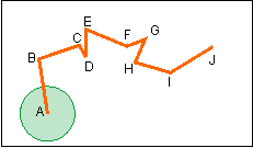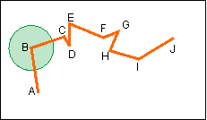 Points D and E fall within the circle so they are deleted. The circle is moved to point F.
