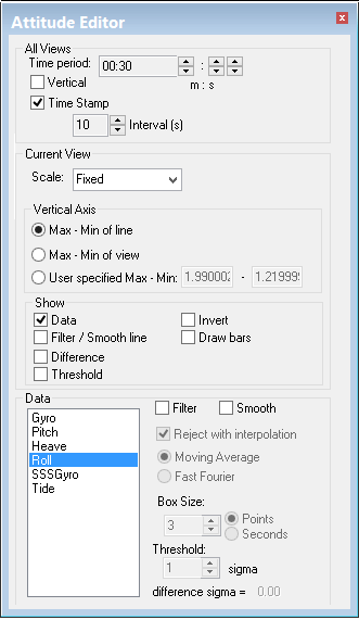 CARIS HIPS and SIPS Help : HIPS and SIPS : HIPS and SIPS Editors : Attitude Editor : Attitude Editor controls
