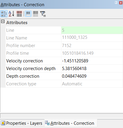 The Corrections properties can be used to apply a change to the depths or to remove refraction artifacts which may exist after incorrect or insufficient sound velocity (SV) profiles are applied in either the acquisition or post-processing phase.