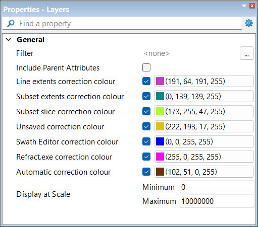 The colours used to represent each correction type can be defined in the properties for the Corrections layer when the Subset Editor is not open.