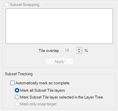 You can also set an amount by which the subset snapping will overlap tiles as you move from completed to unprocessed tiles.