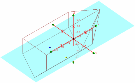 • Origin compass: The axes of the vessel coordinate system, centred on the reference point, also known as the RP (see Vessel Coordinate System).