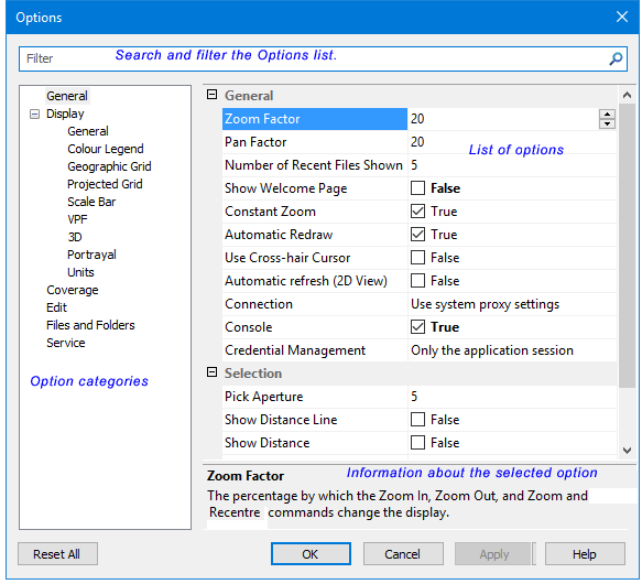 CARIS HIPS and SIPS Help : CARIS : Commands : Options