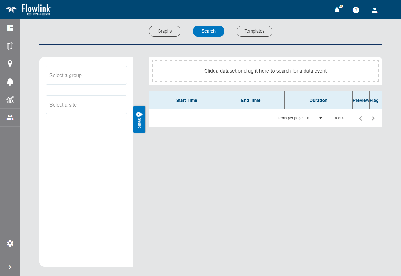 This tab contains the fields used to select the dataset you want to search. To simplify finding the correct dataset, you can filter the list of available sites by first choosing a site group.