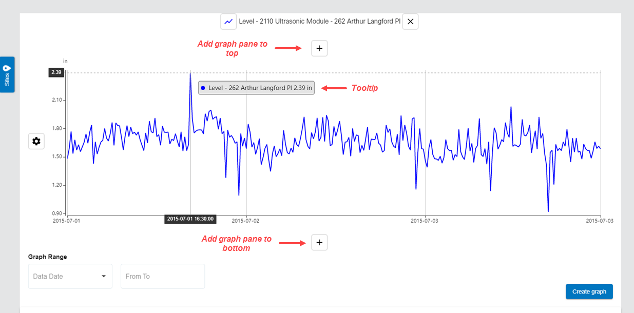 The Graph Range options can be used to define the scope of the graph. The scope can be either a set number of hours or a date range. These are optional settings. If the scope is not defined, all data within date extents of the dataset are displayed.