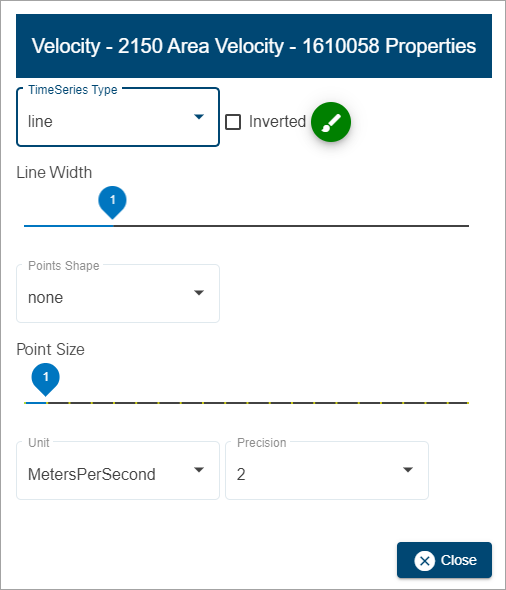 Line Width | The width of the line representing data in a time series graph, measured in pixels. 1. Click and drag the control to the desired width. |