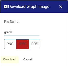 | Download Image Download an image of the current graph display. The image can be saved as a PNG, JPEG or PDF format. 1. Click the Download Image button. The Download Graph Image dialog box is displayed.