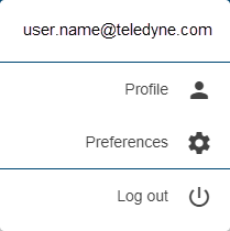In this menu you will find: • the email address of the user account currently logged into the application • a link to the profile settings of the current user account, see User Profile for more information on this tool • a command to log out of the application |