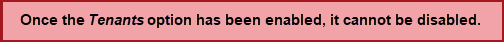 Fields will be added to the panel to show the default Global tenant and to create new tenants.