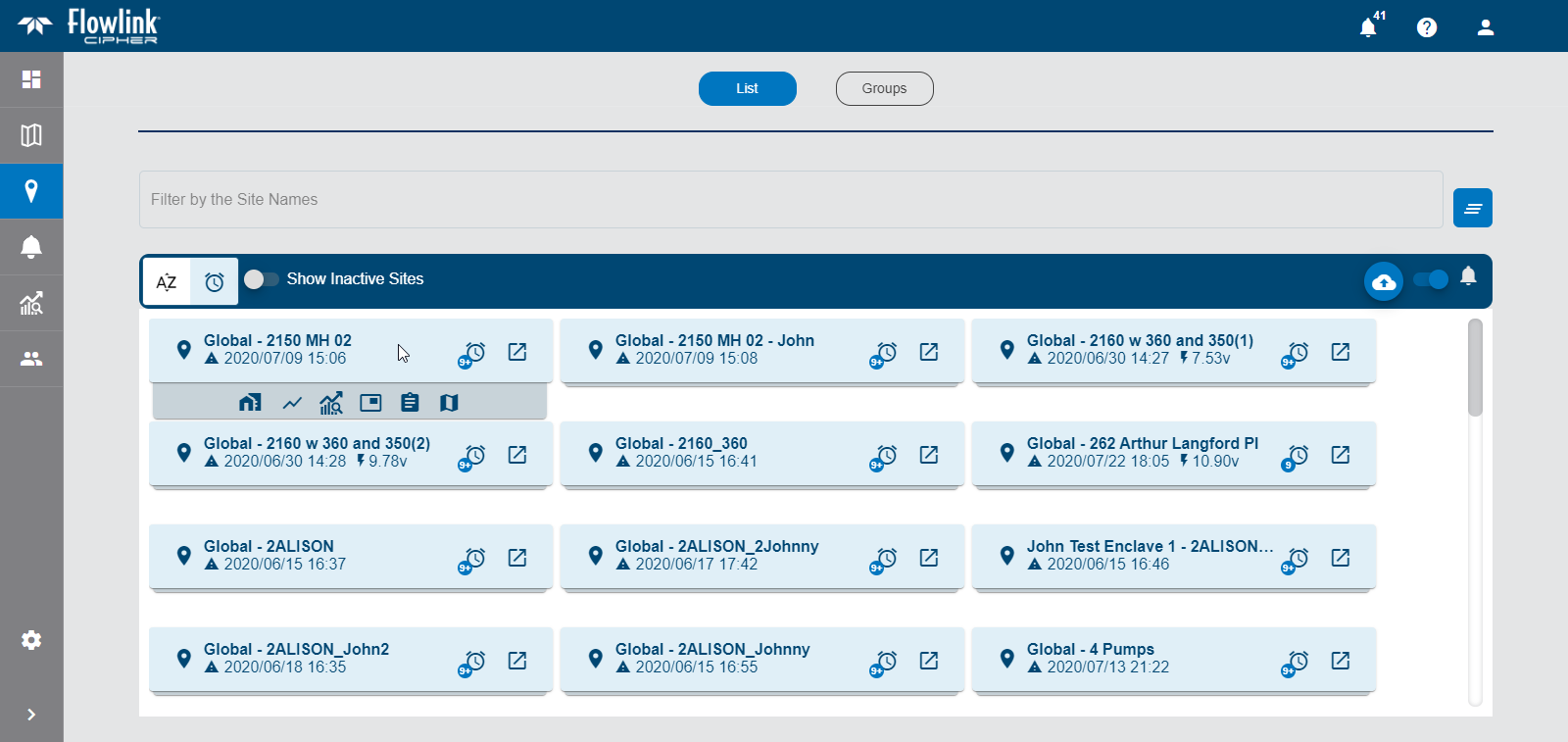 • List: The List section is the default view for the Sites page. It provides a list of all sites currently online. See Site List for information on this section.