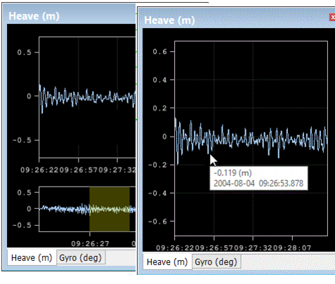 By default, data for Gyro, Heave, Pitch and Roll sensors are displayed.