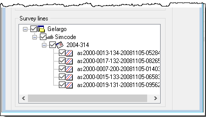 The Survey lines section displays the currently open data in a read-only data tree.