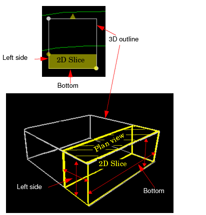 When the 2D slice bounding box is resized, the information in the window is refreshed with new data.
