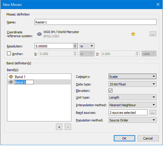 2. Select the sources to be used to populate the band values.
