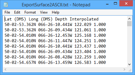 Menu | File > Export > Surface to ASCII |