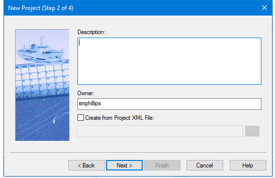 2. [Optional] Type the name of the person working with the project data in the Owner field. The default name that is displayed is taken from the current Windows log-on name.