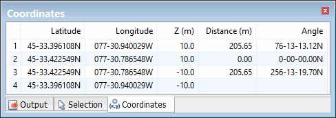 It is possible to adjust the location of the vertical surface x,y,z points either by dragging or by editing any of the points in the coordinate grid. One of the four points defining the vertical surface may be removed, however, vertical surfaces must always have two x,y locations and either three or four unique x,y,z points.