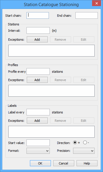 Using the Exceptions fields in each section, you can identify specific chains to exclude when applying stationing, profiling or labelling.