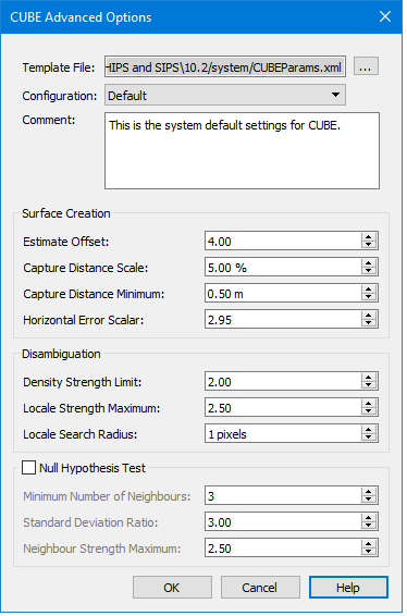 Use the Advanced Options to set and save a new configuration. The default configuration file is C:\ProgramData\CARIS\HIPS and SIPS\10.0/system/CUBEParams.xml