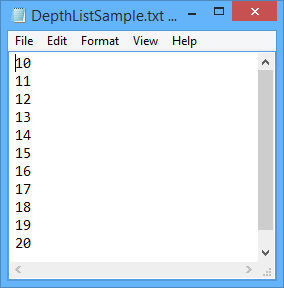 A sample list is provided when BASE Editor is installed. This file can be used, or you can make a copy of the file and edit it as needed. The sample list, DepthListSample.txt, can be found at: