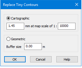 The Replace Tiny Contours dialog box contains the options for replacement.