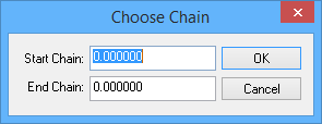 • Type the Start Chain and End Chain for the range you want excluded from stationing.