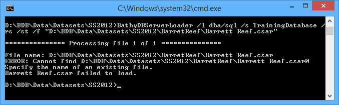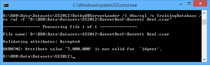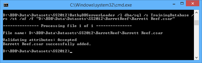 2. Type “BathyDBServerLoader” followed by the appropriate parameters.