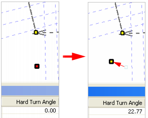 cannot be represented just by the chains and offsets of the compound alignment. In this case a hard turn angle is used to represent the point.