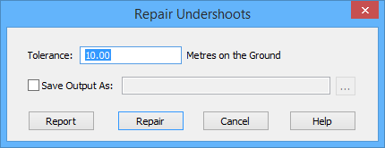 The Repair Undershoots dialog box remains open. If the tolerance is too small, you can enter a larger value and try again.