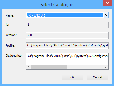If you are opening a file that requires a catalogue, the Select Catalogue dialog box is displayed.