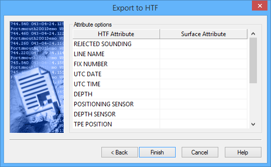 1. Expand the drop-down lists and select a surface attribute for each HTF attribute that should be mapped in the output file.