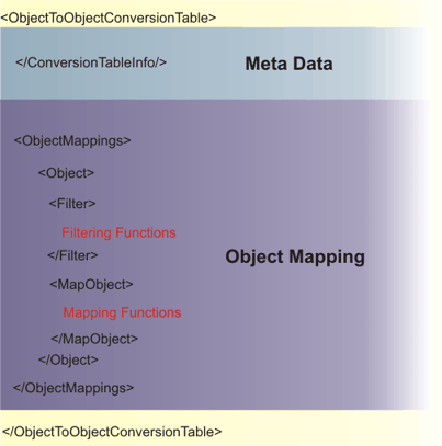 The <ObjectToObjectConversionTable> contains the Version attribute. The Version is the version number for the file.