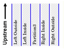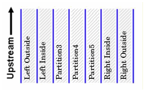 Up to twenty partitions can be created in each reach and each partition is named according to the number of partitions created. For example, if the division results in three partitions, they would be named: “Middle Half”, “Left Outside”, and “Right Outside”.