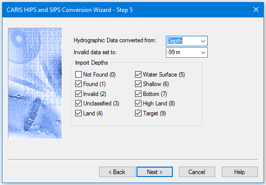 3. Select the types of depths to be imported, as flagged by their specified value.