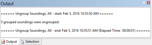 The soundings in all groups can now be selected and computed as individual features. A message is displayed in the Output window stating that all soundings were un-grouped.