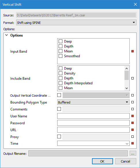 The Vertical Shift tool is used to apply a vertical shift to one or more layers (Depth, Height, etc.) of an existing raster surface or point cloud, to create an output surface with an increased or decreased Z value. There are numerous shift types available; this document describes the SPINE shift type. See Vertical Shift Surface for information on the other shift types.