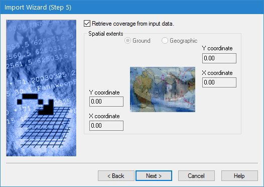 1. Either click the check box for the Retrieve coverage option or select the type of coordinates to use and manually enter the coordinates for the extents.