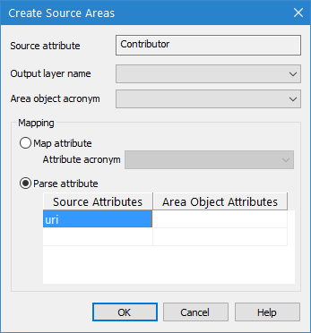 The Mapping fields are used to map attributes to the new area objects based on the values in the contributor attribute. You have the option of parsing multiple attributes or mapping to a single attribute.