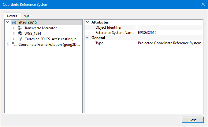 This tab displays the coordinate reference system as a WKT (Well Known Text) string.