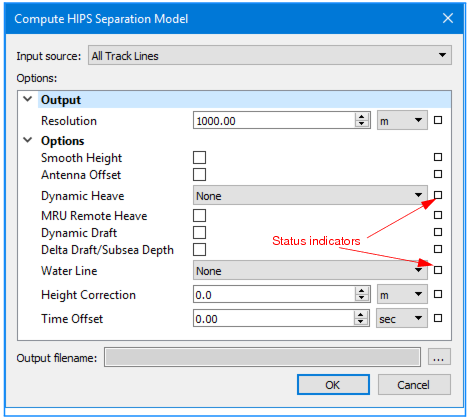 Dynamic Draft | 1. Select the check box to apply dynamic draft (as a result of interpolating the draft table in the HIPS Vessel File (HVF), or as stored in HIPS as time series data). |