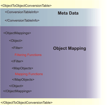 The <ObjectToObjectConversionTable> contains the Version attribute. The Version is the version number for the file.