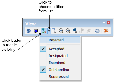 For example, the two-part Display Filter button on the View toolbar can be used to display or hide Rejected data in an editor.