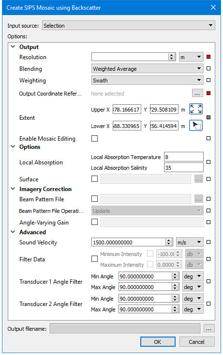 A new mosaic using backscatter data is created using the Create SIPS Mosaic using Backscatter dialog box.