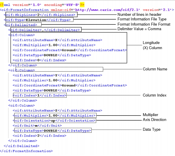 The following is an example of an elevation type information file in the delimited format: